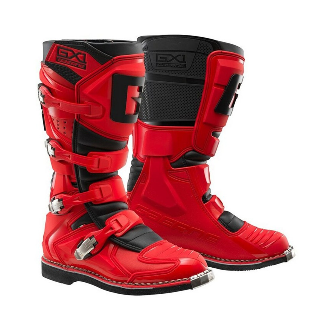 Stivale off-road Gaerne GX1 Red/Black : protezione CE, costruzione Goodyear Welt, sistema anti-torsione ATP, comfort e grip per motocross.