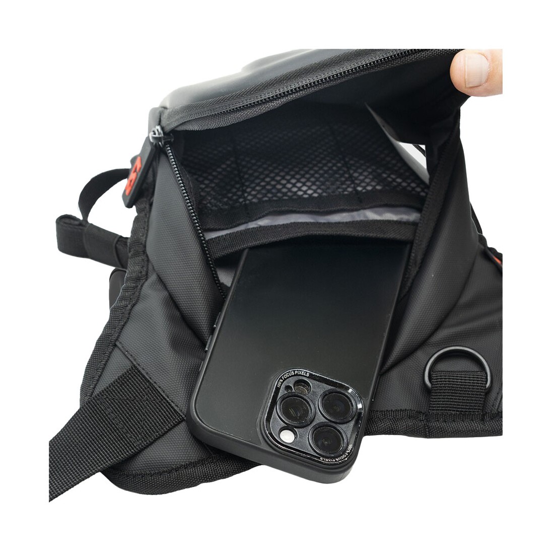 Sistema di fissaggio regolabile su vita e coscia garantisce stabilità anche durante la guida più dinamica, evitando movimenti o fastidi. Le zip impermeabili e le cuciture rinforzate proteggono il contenuto da pioggia e sporco, rendendola adatta a un utilizzo quotidiano in ogni condizione meteo.