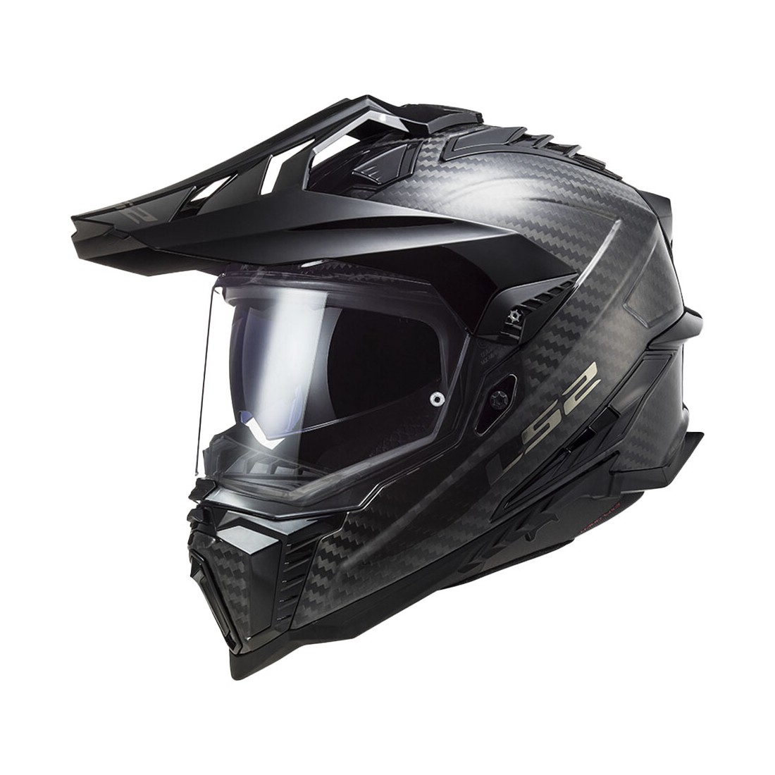 LS2 Explorer Carbon è un casco adventure di alta gamma realizzato con calotta in fibra di carbonio, progettato per offrire massima protezione con un peso contenuto. È la scelta ideale per chi pratica turismo adventure, viaggi a lungo raggio e utilizzo misto asfalto–off-road.
