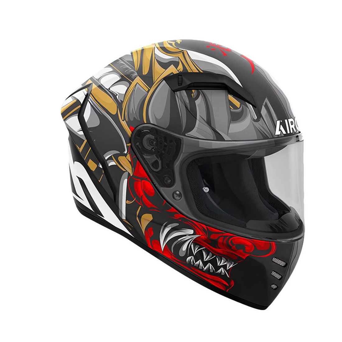 Casco integrale Airoh Connor Samurai Matt, con calotta in termoplastica HRT, visiera a grande campo visivo con sistema ATVR e ventilazione avanzata. Progettato per strada e touring con comfort e stile dinamico.