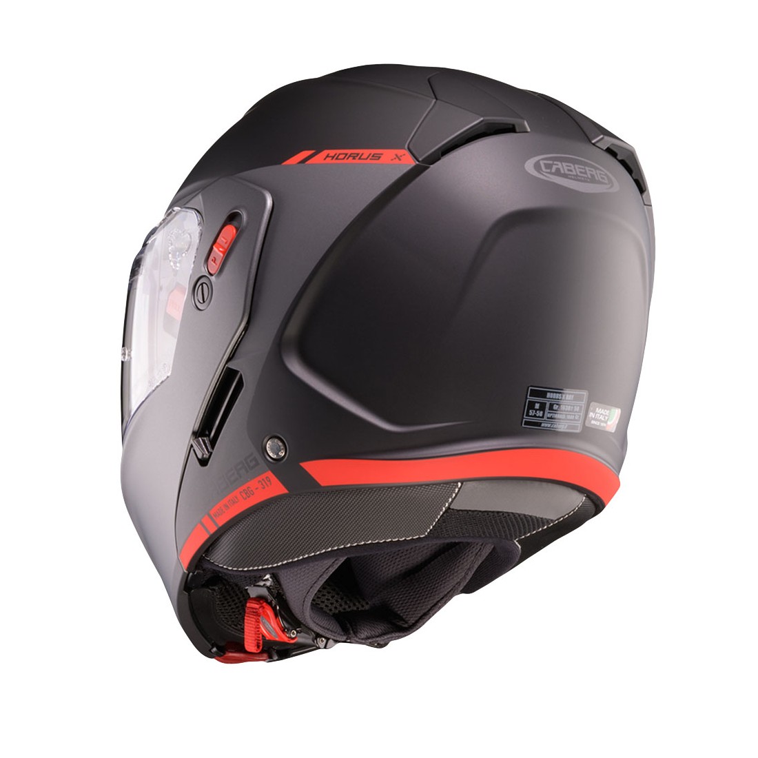Il Caberg Horus X nasce come casco apribile di nuova generazione pensato per chi cerca versatilità tra touring e commuting urbano. La doppia omologazione P/J permette l’utilizzo sia in configurazione integrale sia con mentoniera aperta, offrendo grande praticità nelle soste e nei percorsi cittadini. La calotta è realizzata in LG CHEM HI-IMPACT ABS, con peso indicativo di 1650 g ±50 g e taglia unica di calotta per mantenere equilibrio tra protezione e comfort.