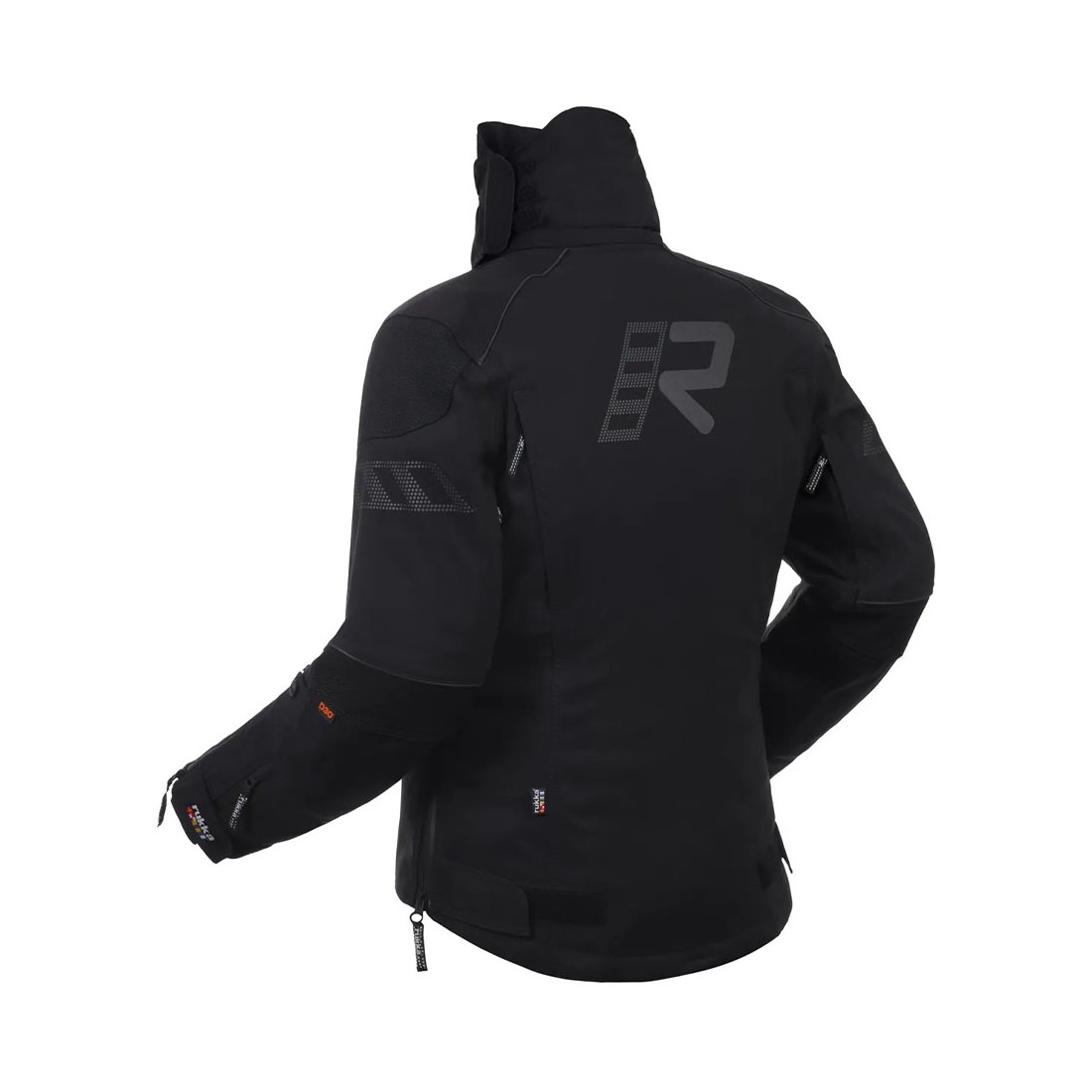 I rinforzi in CORDURA® 1500D su spalle e gomiti garantiscono un’eccellente resistenza all’abrasione nelle aree più sollecitate, mentre gli inserti PU Tek elasticizzati aumentano la durabilità senza penalizzare la libertà di movimento. La protezione passiva è affidata ai protector D3O® Diablo di Livello 2 su spalle e gomiti (EN 1621-1), con tasche dedicate per protezioni toraciche D3O® CP1/CP2, e spazio per un paraschiena Rukka D3O® Air XTR All Back di Livello 1 o 2.