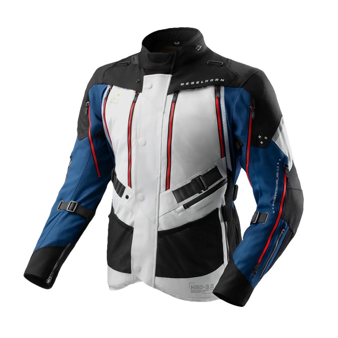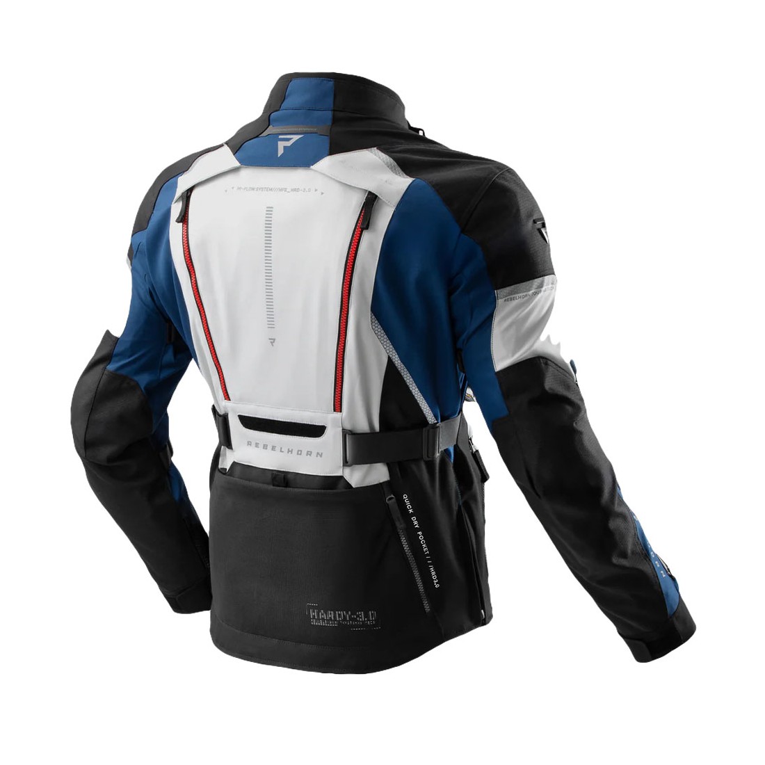 Giacca moto touring Rebelhorn Hardy 3, progettata per offrire massima versatilità, protezione e comfort in ogni condizione climatica grazie alla costruzione tecnica a 3 strati.