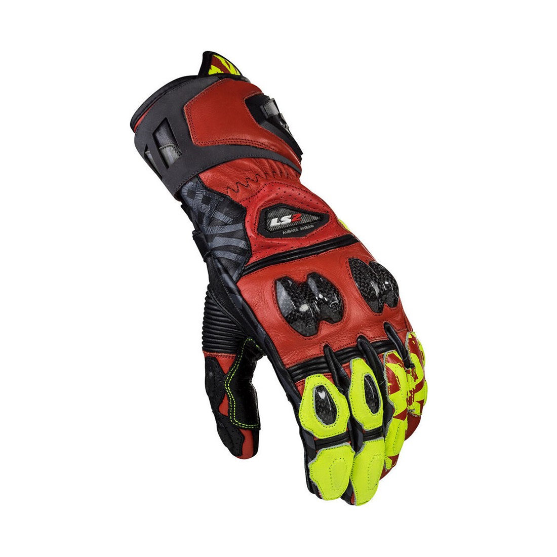 Guanti moto LS2 Feng progettati per pilotaggio sportivo e stradale, con un focus sulla protezione avanzata e la durata nel tempo. Costruiti con pelle bovina e pelle di capra pieno fiore, integrano rinforzi in Superfabric® sul palmo e protezioni rigide in fibra di carbonio su nocche, dita e palmo per una resistenza strutturale elevata in caso di impatti e abrasione.