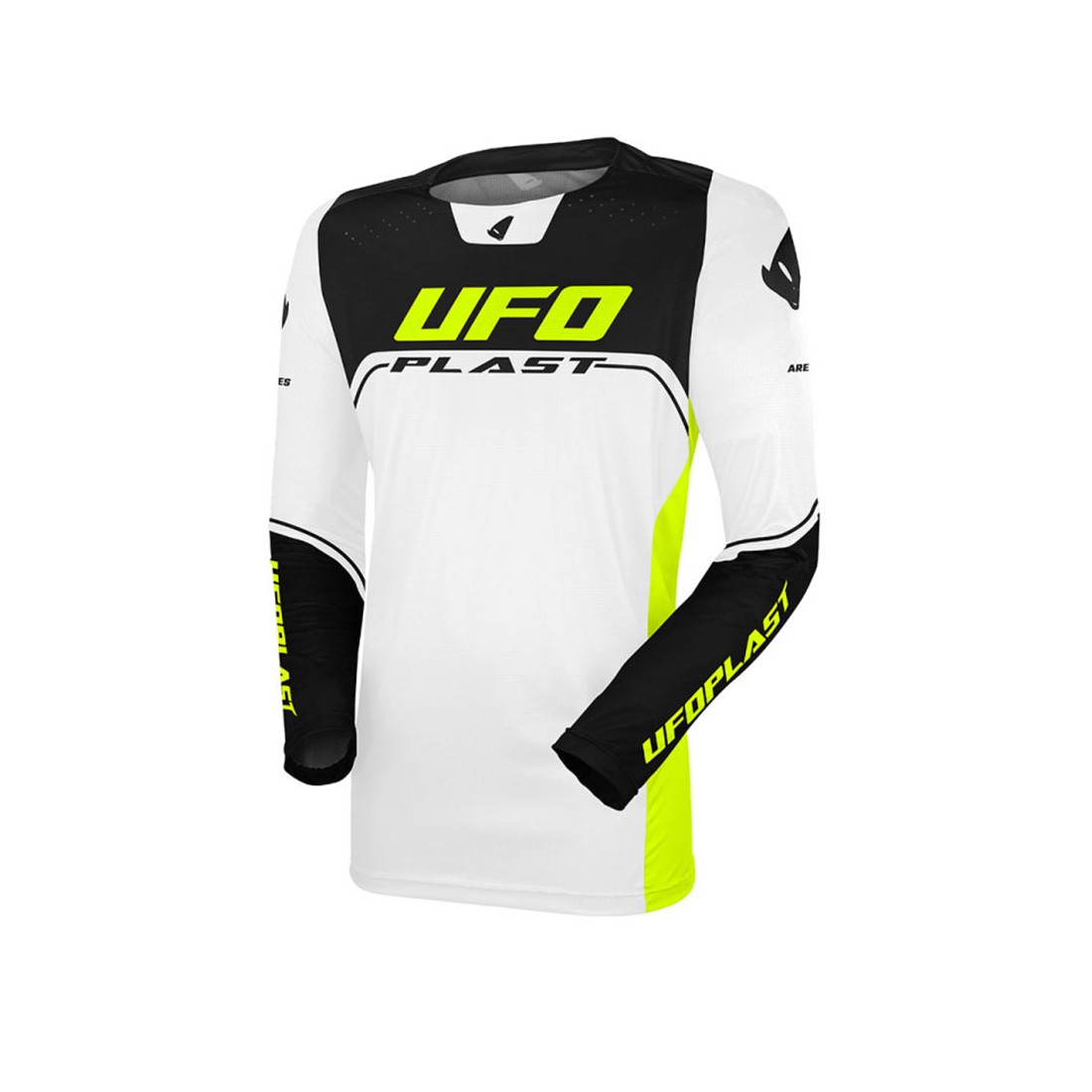 Maglia UFO Ares Bianco/Nero/Giallo Fluo – Stretch Fit | Canella Moto