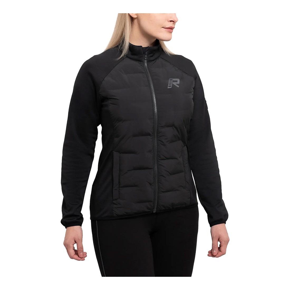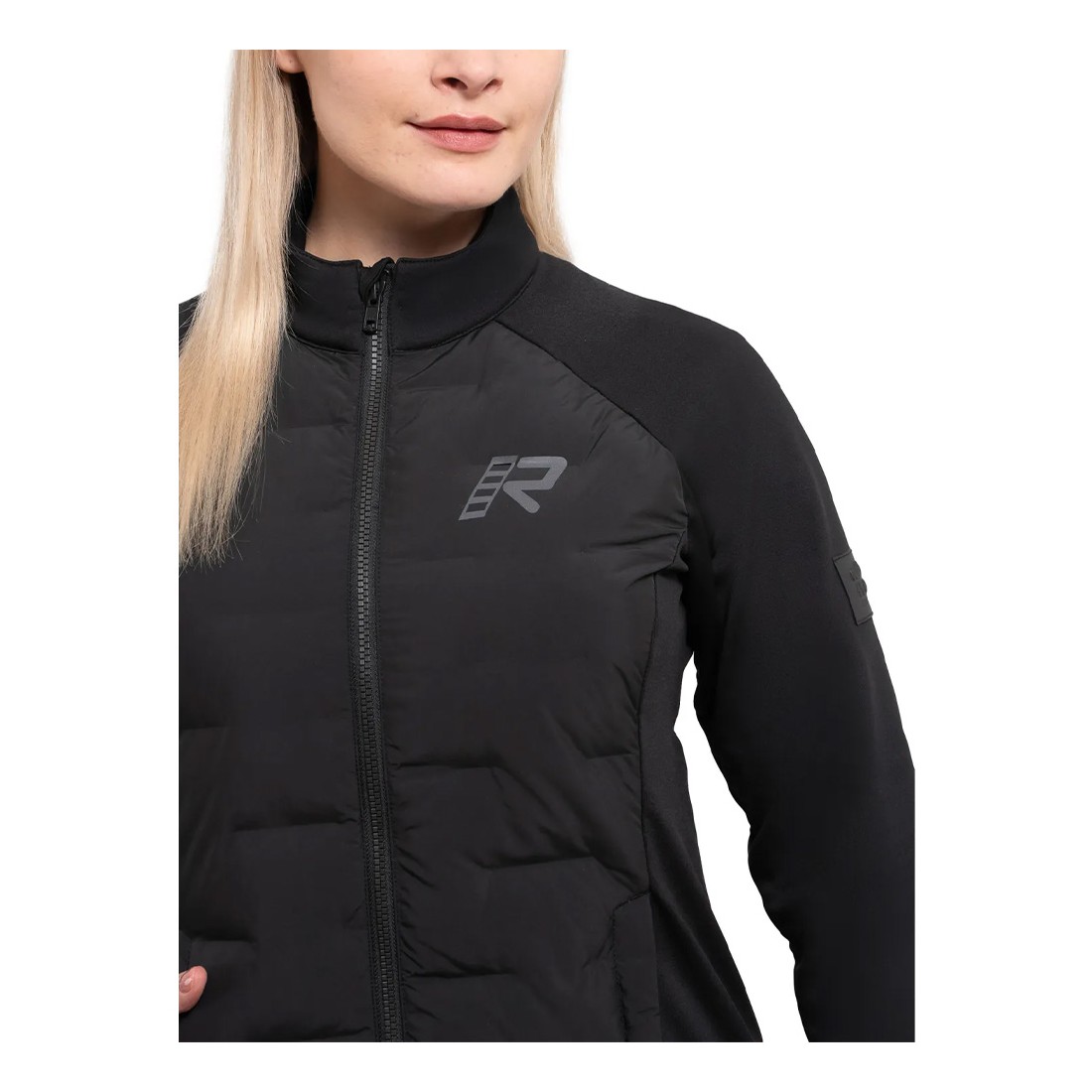 Midlayer donna Rukka Comborina in 100% poliestere, con pannelli elasticizzati foderati in fleece, isolamento in Repreve® (riciclato) sul corpo e due tasche inferiori con zip.