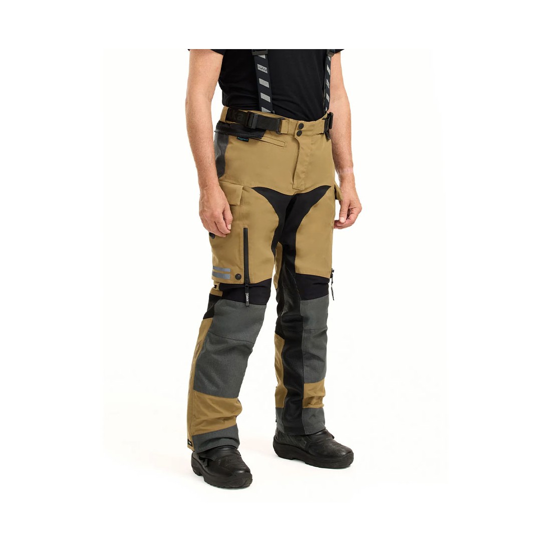 Nelle zone più esposte all’abrasione – come ginocchia, fianchi e seduta – sono presenti rinforzi in CORDURA® ad altissima resistenza, studiati per sopportare l’uso off-road, le cadute a bassa velocità e lo stress tipico dei viaggi adventure. La struttura complessiva privilegia robustezza e durata nel tempo, senza sacrificare la mobilità.