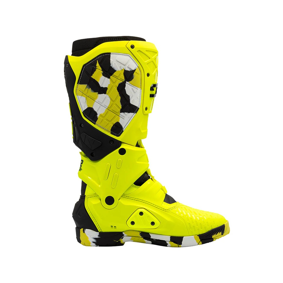 La struttura dello stivale integra protezioni antiurto ad alta densità distribuite lungo tutta la superficie, creando una struttura resistente ma allo stesso tempo leggera e flessibile, ideale per affrontare le condizioni più impegnative del motocross e del supercross.