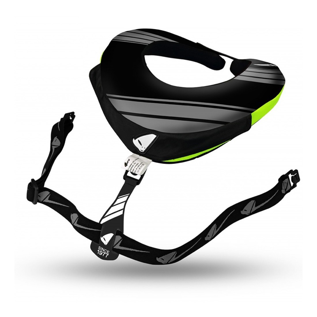 Supporto per il collo maggiorato con bretelle elastiche regolabili, realizzato in poliuretano espanso in grado di attutire urti e sollecitazioni, offrendo sostegno alla zona del collo.